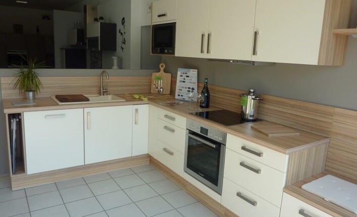 Nach der Planung übernehmen wir den passgenauen Aufbau der Küchenmöbel, den Einbau der Elektrogeräte und das Einsetzen der Arbeitsplatte.